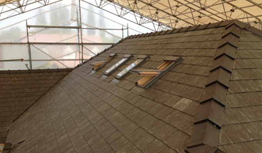 Reclaimed Welsh Slate Roof with Reclaimed Sandstone Ridge and Conservation Roof